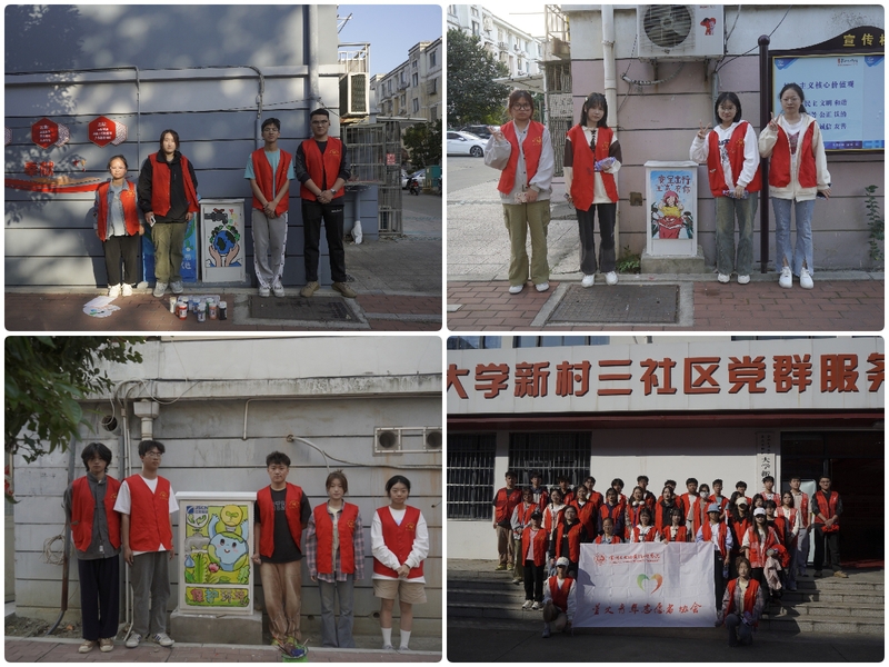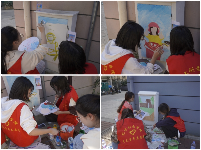 為了進一步推動大學生志愿者參與基層社區治理,引導青年大學生在共建共治共享中展現青春作為,充分發揮大學生的聰明才智,積極引導廣大學生在社會實踐中受教育、長才干,10月29日,藝術創意學院星火青年志愿者協會的大學生志愿者們走進常州市武進區南夏墅街道大學新村三社區,開展“彩繪電表箱,文明新花樣”社區志愿服務。