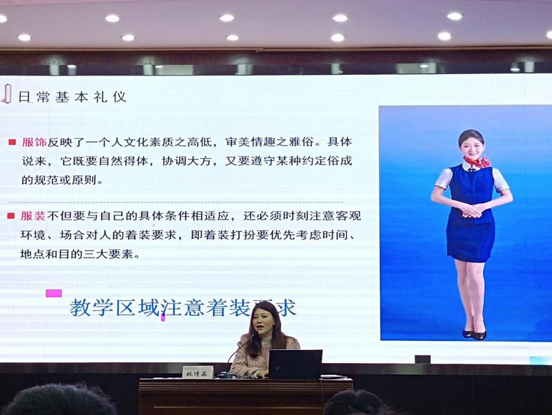 為加強校園文明建設,增強學生文明意識,11月15日下午,學院開展題為“我為文明添光彩”校園文明禮儀講座,本次講座邀請學院空乘專業教師姚倩茹主講,2023級全體學生骨干共計200余人參加講座。