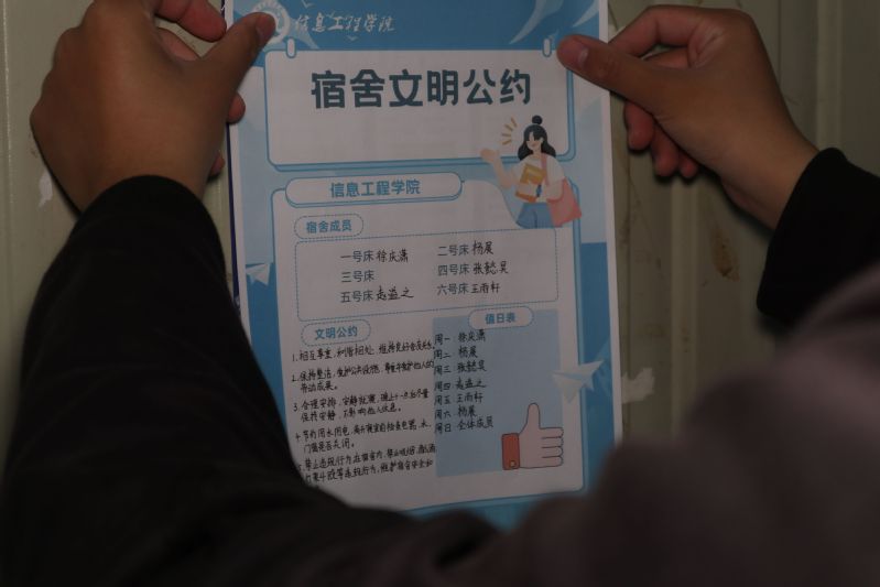 為推進(jìn)“一站式”社區(qū)建設(shè),培養(yǎng)學(xué)生養(yǎng)成良好的文明禮儀習(xí)慣,教育學(xué)生知禮守禮,營造和諧友愛的宿舍氛圍,構(gòu)建整潔有序的宿舍環(huán)境,11月,信息工程學(xué)院舉辦“一起制定宿舍文明公約”的主題活動。此次活動面向信息工程學(xué)院全體學(xué)生。