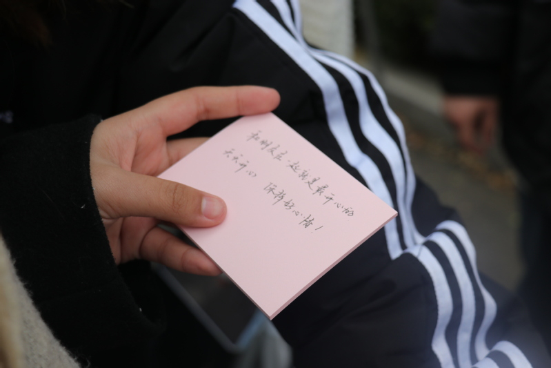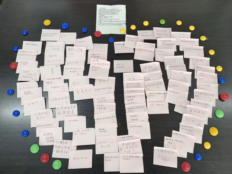 活動中有位同學(xué)說自己前期沒有報(bào)名,咨詢是否可以參與活動,收到肯定答復(fù)后,他鄭重地在紙條上寫下了“媽媽身體越來越好了,希望大家也身體健康。”這句話,并將這份快樂張貼于白板上,和他人分享喜悅。在場的同學(xué)們紛紛發(fā)出“哇”的贊美并給予他擁抱。“情緒交換商店”心理互助交流活動在一片歡聲笑語中圓滿落幕。