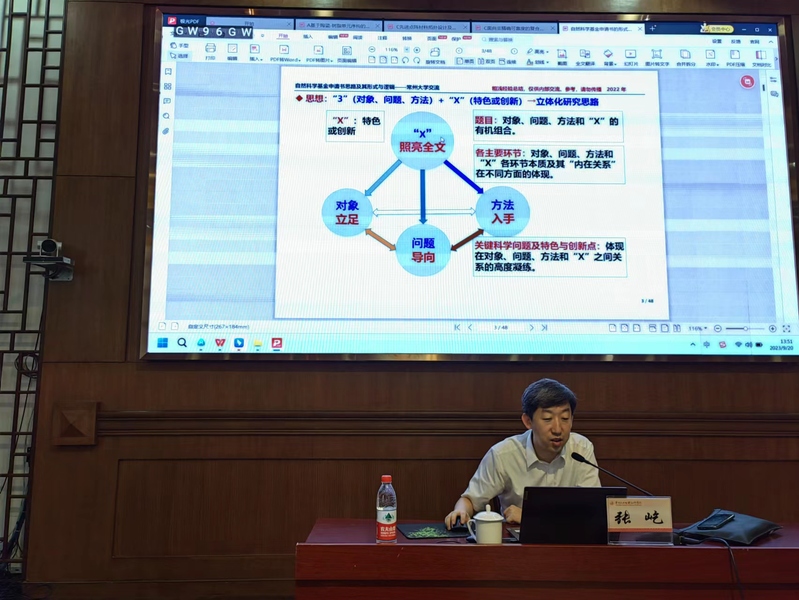 張屹結(jié)合個人多年國家自然科學(xué)基金等項(xiàng)目的申報、評審經(jīng)驗(yàn),針對申請書的選題、撰寫、評審意見等方面展開了講解。通過真實(shí)案例,他細(xì)致分享了題目、摘要、研究意義、國內(nèi)外研究現(xiàn)狀與發(fā)展動態(tài)分析、研究目標(biāo)、擬解決的關(guān)鍵科學(xué)問題、技術(shù)路線等方面的寫法與要點(diǎn),并與參會青年博士進(jìn)行交流、討論,耐心解答他們提出的問題。