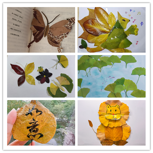 此次活動分為兩個環節,樹葉貼畫和樹葉祝福。活動一經發布就得到了同學們的積極響應,共計收到作品八十余幅。同學們走進自然,尋找收集不同的落葉,并以多彩的樹葉為材料,有的通過裁剪、粘貼、添畫、裝飾等方法,組合成了一幅幅精美的樹葉貼畫;有的以筆為念,采用不同的字體和彩筆,將自己的祝福書寫在落葉上。