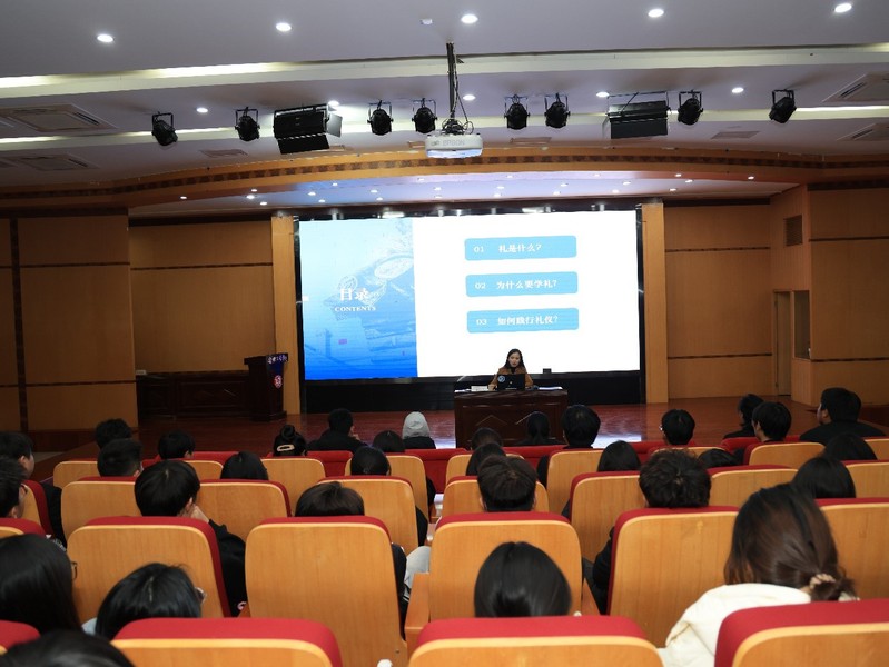 為全面貫徹教育方針,落實立德樹人根本任務,推進文明校園建設,進一步提升在校學生的文明禮儀素養,提高我校學生道德品質和公德意識,積極構建和諧文明校園。藝術創意學院邀請數字商務學院肖婷玉老師開展《踐行文明禮儀·共創和諧校園》文明禮儀素養公開課。本次文明禮儀素養公開課由藝術創意學院輔導員劉天宇老師主持,藝術創意學院2023年“青馬工程”100余名培訓學員參加。