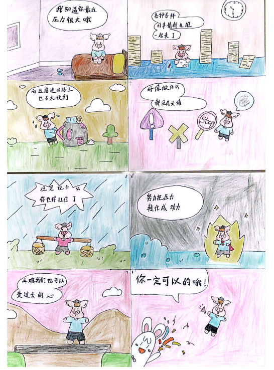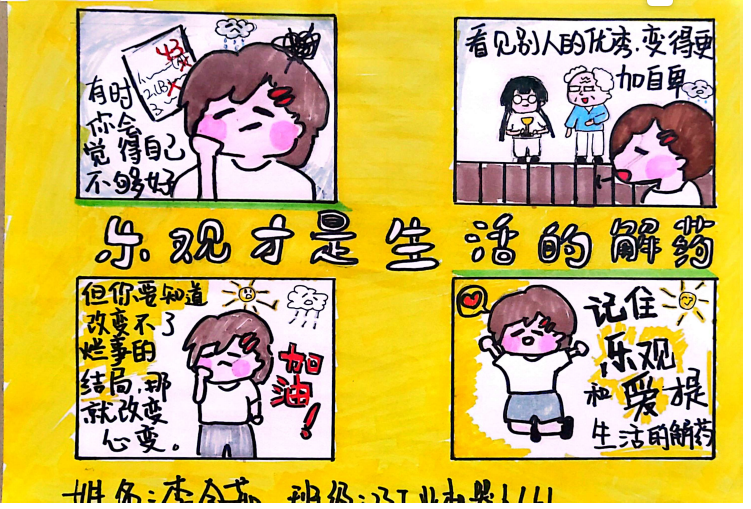 心理漫畫是用繪畫來表達心理活動的一種藝術形式,同時還可以增強關注自我心理的意識,為此學院舉辦了以漫話“心”語為主題的心理健康漫畫比賽。活動自啟動以來獲得了熱烈響應,同學們踴躍投稿,用繽紛的色彩描繪出了一幅幅“治愈系”的心理健康漫畫。作品呈現形式豐富多彩,有單幅漫畫、連環漫畫等不同表現形式,采用寫實或夸張幽默等多種表現手法,表現情緒管理、直面挫折、人際交往等各種主題。活動引導學生在畫筆行走間勾勒青春和夢想的印記,在只言片語間表達心靈的感受和體驗,讓同學們在藝術與心靈的碰撞中獲得感悟。