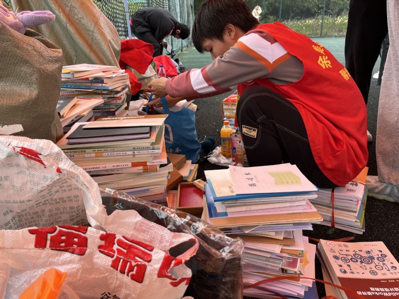 活動現場,來自多所二級學院的大學生以及老師們紛紛前來捐贈物品,他們手里拿著各式各樣的愛心物品,疊放整齊的衣物、書本等,臉上流露出笑容,感受著奉獻的快樂,歡聲笑語地走向操場,將愛心物品交到志愿者手中。大學生志愿者們分工明確,仔細清點好愛心物品,及時將愛心物品進行分類,同時幫助同學們做好登記。厚重的書本、時尚的外套、精美的本子……都代表著一份愛心,一份溫暖,我們心手相牽,傳遞著愛的火炬。現場秩序井然,充滿了溫情。
