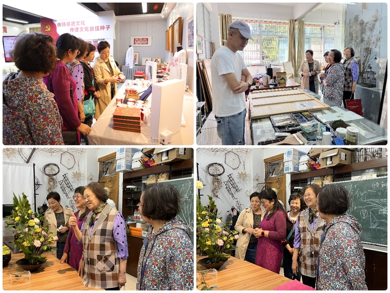在藝術(shù)創(chuàng)意學(xué)院黨總支書記王麗萍的帶領(lǐng)下,朱文霞,巢桂芳,周英,侯志燕四位關(guān)工委老教師依次參觀了學(xué)院水彩畫工作室、插花藝術(shù)工作室和金壇刻紙楊兆群大師工作室,詳細(xì)了解了目前工作室活動開展和美育課程開設(shè)與體驗(yàn)的情況,并在工作室指導(dǎo)老師的講解下,欣賞了師生創(chuàng)作的各類藝術(shù)作品和文創(chuàng)作品。各位關(guān)工委老教師們對學(xué)院豐富的美育教育內(nèi)容和文化活動表示肯定,并鼓勵同學(xué)們積極參與各項(xiàng)美育學(xué)習(xí)和體驗(yàn),培養(yǎng)對美好人生的審美體驗(yàn)。
