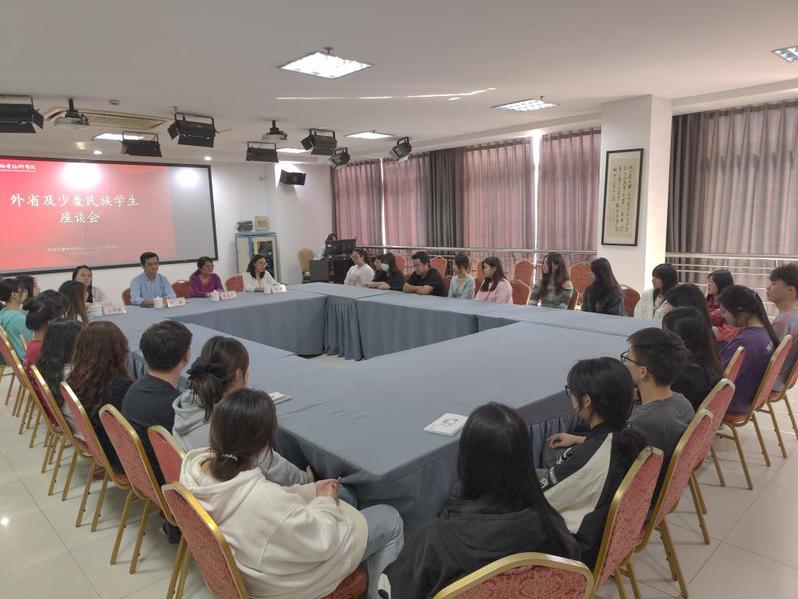 座談會氣氛熱烈,外省與少數民族學生踴躍發言,依次介紹了學習、生活等方面分享了自己的所思所感。同學們對學院良好的學習氛圍、飲食照顧、文化尊重、表達了個人想法,分享了本民族的民風民情。座談會上,師生間親切交流,耐心傾聽學生在校期間遇到的困難,并對學生的學業規劃、就業前景等方面給出了相關建議。(審核:王迎春、須嘉君、楊曌)
