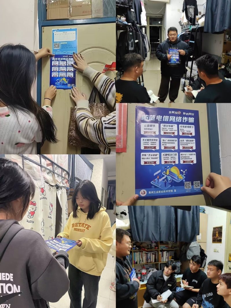 宿舍是學生生活的主要場所,也是詐騙頻發的主要發生陣地。樹牢安全紅線意識,打造高質量平安校園,學生黨員在學生公寓分發反詐宣傳單,深入學生群眾一對一科普防詐小知識,面對面宣傳防詐,搭建溝通橋梁。學生干部走訪并詢問同學們日常生活、學習、個人發展等多個方面的問題,及時提出相應的解決方案。