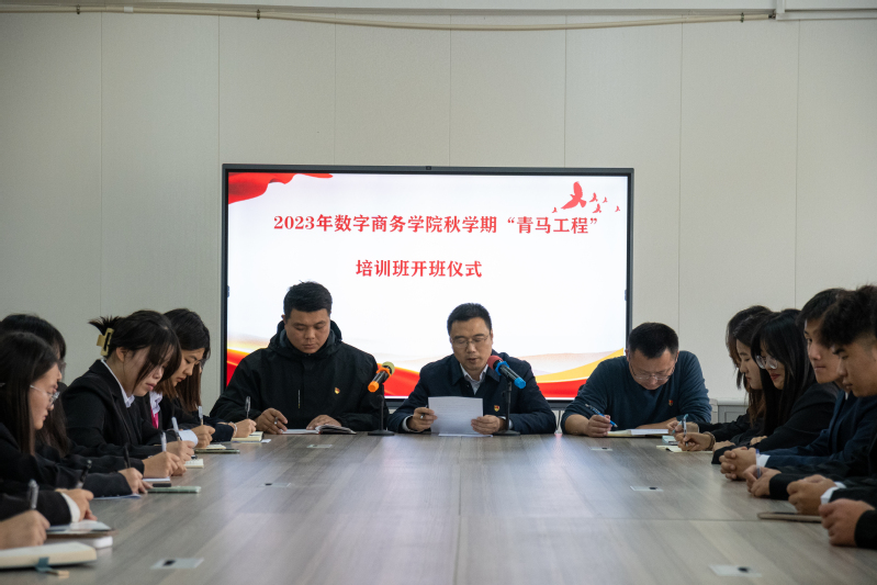 為深入學習貫徹黨的二十大精神,用習近平新時代中國特色社會主義思想武裝青年,著力為黨培養(yǎng)和輸送一批信念堅定、忠誠可靠、堪當重任的青年政治骨干,11月26日,數字商務學院舉辦“青馬工程 ”培訓班開班儀式。數字商務學院黨總支副書記馬軍、吳佳偉,全體輔導員以及學院青馬工程培訓班全體成員出席開班儀式,活動由團委書記徐克選主持。