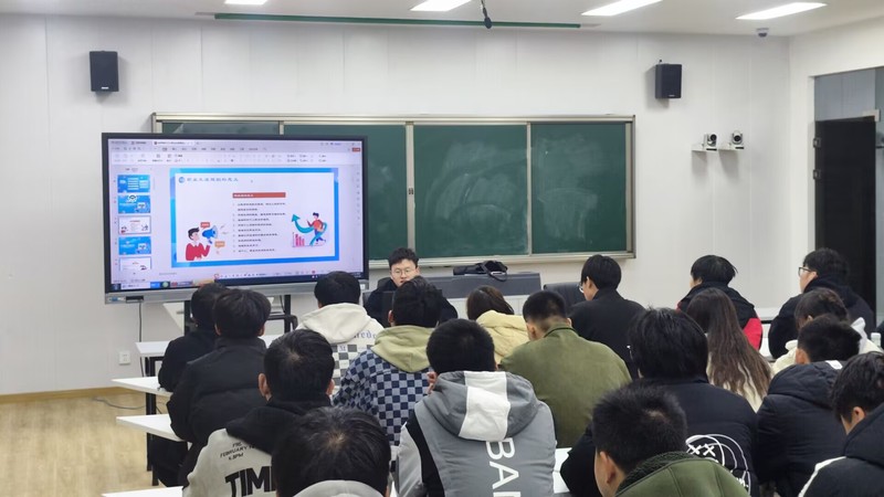 陳雷雷從職業角色認知和職業發展認知兩個方面作了講解。他希望同學們在大學期間不僅要學好專業知識,更要提升邏輯思維能力和認知系統能力。同時,他鼓勵同學們多參加社會實踐活動,培養創新創業精神,他建議同學們“善學習、善思考、善溝通、善應變、善總結、善表達”。
