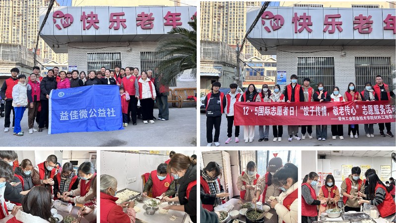 為弘揚(yáng)中華民族敬老愛老的傳統(tǒng)美德,在第38個(gè)國際志愿者日到來之際,材料工程學(xué)院益佳微公益社團(tuán)聯(lián)合一加青年志愿者分隊(duì)前往常州市天寧區(qū)快樂老年公寓開展“餃子傳情,敬老傳心”志愿服務(wù)活動(dòng),積極踐行“奉獻(xiàn)、友愛、互助、進(jìn)步”的志愿服務(wù)精神。