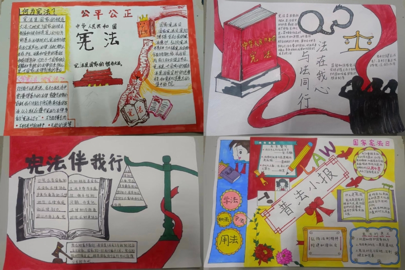 普法手抄報展示。信息工程學院舉辦以“憲法知識宣傳”為主題的手抄報設計活動。通過“互動式”法治宣傳活動,充分調動廣大學生學法熱情,提升學法趣味性和吸引力,使青年學生在潛移默化、寓教于樂中接受法治教育,同時通過在“一站式”社區中對部分優秀作品進行展出,也營造了憲法學習宣傳教育的良好氛圍,推動了憲法真正走入大學生的日常生活。