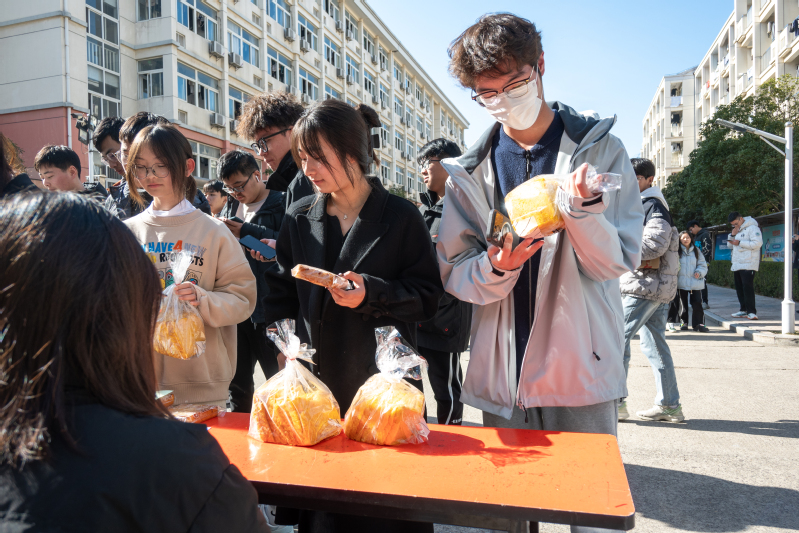為樹立當代大學生對社會弱勢群體友好幫助的意識,引導廣大青年在烘焙中發現特殊群體閃光點,在奉獻愛心時傳遞人間溫情,在暖冬寄語里彰顯青春活力,12月8日中午,HAW社團在社區大屏幕前舉行了“只此冬日,愛在義起”愛心義賣活動。