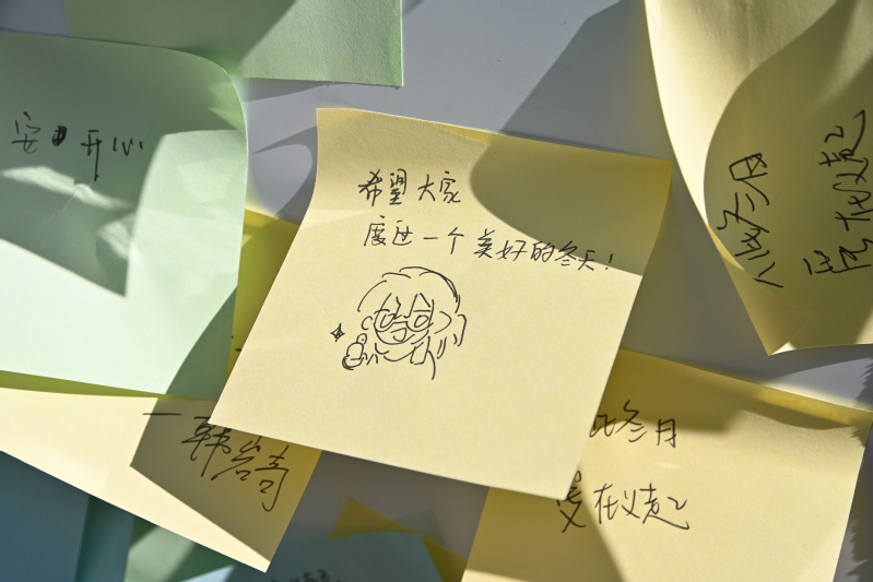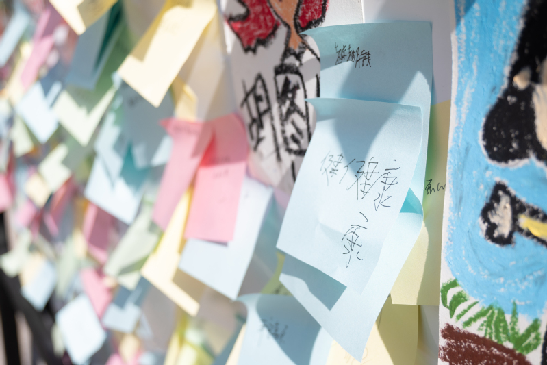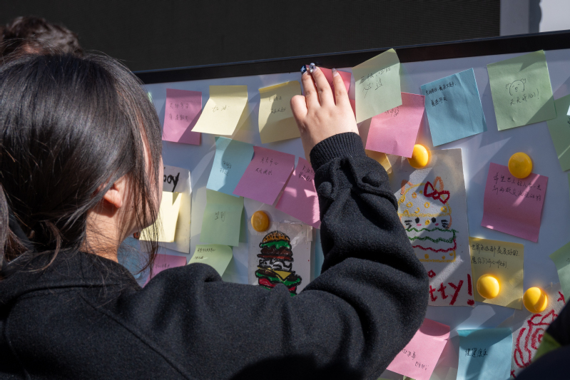 以筆抒情,心愿逐夢。活動現場提供了愛心便簽,參與同學紛紛寫下“早日過四級”“平安喜樂”“天天開心”“希望大家度過一個溫暖的冬季”等美好祝福,這些簡單而真摯的祝福充滿了同學們對未來的期待和對美好生活的向往。現場制作的DIY手繪畫和愛心便簽都會在活動結束后統一收集整理贈送給天愛的孩子們,保證每個同學的善意都能被小朋友接收,不讓愛心落空。
