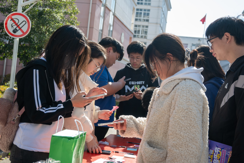 活動前期,在預先的分工下,工作人員排好桌椅并布置好活動所需的展示板和愛心留言墻。與此同時,活動場地人員簡單維護了秩序,并擺放好義賣物品以保證活動的順利進行。