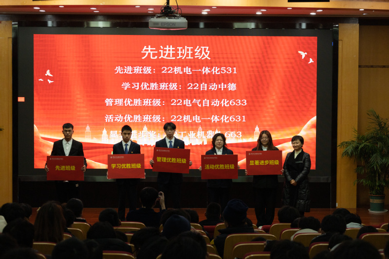 為加強(qiáng)資助育人成效,總結(jié)成績(jī)經(jīng)驗(yàn),激勵(lì)學(xué)院廣大學(xué)生保持昂揚(yáng)向上的奮斗姿態(tài),聚焦學(xué)生德智體美勞全面發(fā)展,選樹(shù)先進(jìn)典型、凝聚榜樣力量,12月15日,智能控制學(xué)院召開(kāi)2023年度表彰大會(huì)暨企業(yè)捐贈(zèng)儀式。學(xué)院黨總支副書(shū)記麻麗娟、黨總支副書(shū)記涂艷群、副院長(zhǎng)劉進(jìn)福以及學(xué)院師生代表參加了本次大會(huì)。江蘇威思邁智能科技有限公司總經(jīng)理陳大偉受邀出席。