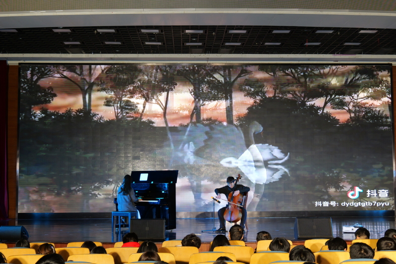 晚會在街舞社時尚動感的開場歌舞《問明月》中拉開序幕,現(xiàn)場燈光璀璨,青春氣息撲面而來吳浩楠的吉他指彈,張夢團隊的炸裂說唱《曬》讓青春躁動起來;時代造就青年,盛世成就青年,青春說宣講團為我們帶來了朗誦《歲月蔥籠》,“我的樣子就是明天的模樣”青年成團,熠熠生輝,莫晶晶為大家?guī)砹税倌昵啻海敗叭肌薄队形摇贰1硌菡邆冊谖枧_上用動聽的旋律和悠揚的舞姿點燃滾燙的夢想,同學們在臺下感受聽覺視覺的盛宴中歡呼陣陣。