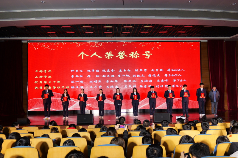 本次表彰大會對2022-2023學年獲得校級以上榮譽的同學進行了集中表彰,受表彰人員達373人。國家獎學金獲獎代表孫飛同學發言,他表示大學要靠自己主動去學才能學到東西,只有不斷努力,才能取得優異的成績。他分享了獲得江蘇省職業技能大賽財經商貿類電子商務高職組一等獎的勵志故事,鼓勵同學們要以飽滿的熱情投入學習和實踐中,為中國的未來貢獻自己的力量。