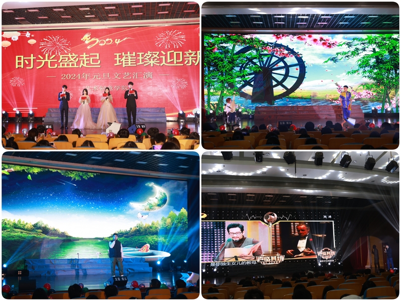 12月27日18點,藝術創意學院在圖文信息樓千人報告廳舉辦了以“時光盛起·璀璨迎新”為主題的2024年元旦晚會。藝術創意學院黨總支書記王麗萍、副院長肖新華(主持工作)、黨總支副書記孟慶霞、副院長瞿新忠、各教研室主任、專業帶頭人、全體輔導員、部分班主任和教師出席了本次晚會,藝術創意學院2022、2023級全體學生參加晚會。