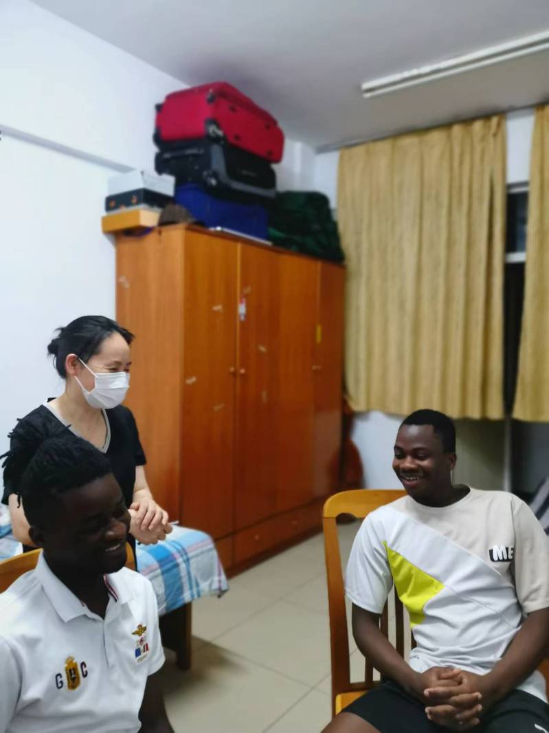 疫情時期,為了陪伴留學生,范巧芳吃在食堂,住在學生宿舍,整整三年,她都和學生們呆在一起。封校期間,她除了每天認真做好宿舍區域消毒、學生晨午檢,督促學生做好每日健康申報,組織學生們參加核酸檢測等工作,還要安撫學生們的緊張情緒,為學生們外出購買食材,給滯留在國外的學生收拾好所有行李,等待他們重回學校。