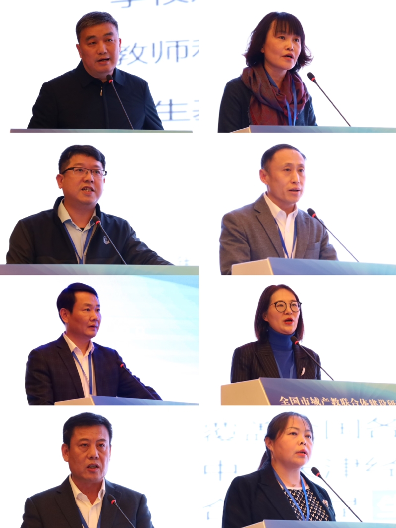 院校報告環節,常州新能源產教聯合體院校代表、聯合體理事會副理事長、我校黨委書記席海濤,大連金普新區(大連經濟技術開發區)市域產教聯合體牽頭院校代表、大連職業技術學院副校長宋麗麗,晉江市域產教聯合體牽頭院校代表、泉州職業技術大學副校長郭霏霏,長春市汽車產業集群產教聯合體牽頭院校代表、長春汽車工業高等??茖W校副校長張勇忠,贛州稀有金屬市域產教聯合體牽頭園區代表、贛州經開區黨政辦四級調研員、聯合體理事會理事長翁毅軍,武漢中國光谷產教聯合體牽頭院校代表、武漢軟件工程職業學院副校長孫美華,上合示范區(青島)產教聯合體院校代表、膠州市職業教育中心學校副校長莊錫高,天津經濟技術開發區生物醫藥產教聯合體院校代表、聯合體促進中心理事、天津科技大學生物工程學院副院長滕玉鷗等8位國家級、省級市域產教聯合體牽頭院校、園區代表分別就產教聯合體建設的實踐與思考進行深入分享交流。