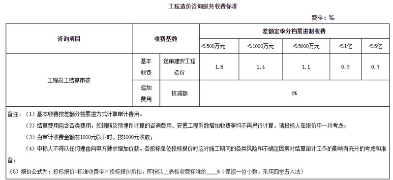 (1)基本收費按差額分檔累進方式計算審計費用。