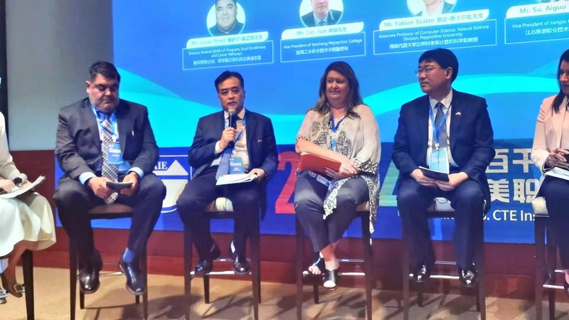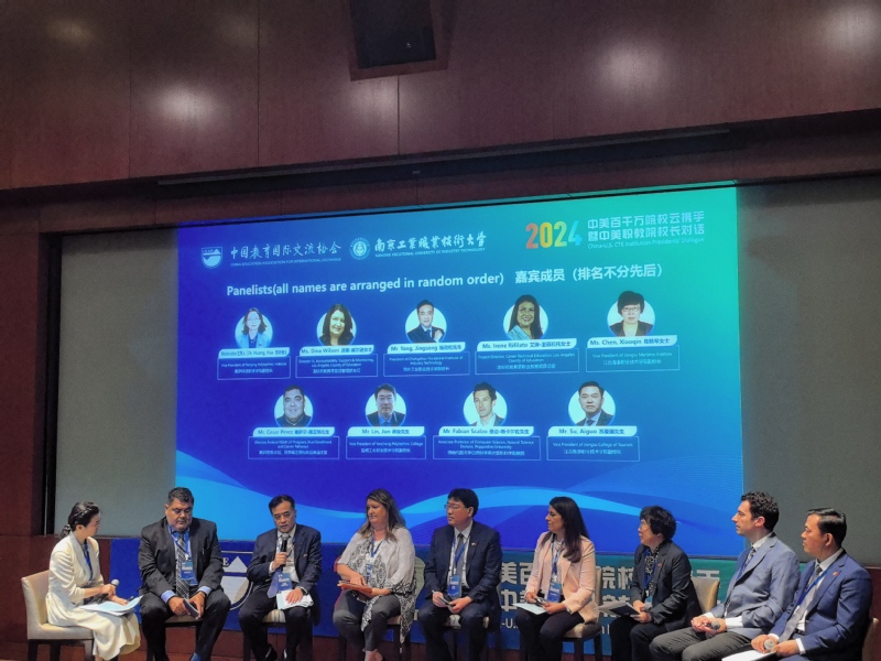 為落實中美兩國元首舊金山會晤共識,推動中美職業教育領域合作交流,洛杉磯當地時間6月14日,2024年首期中美百千萬院校長云攜手暨中美職教院校長對話成功舉辦。來自江蘇美國高職教育合作聯盟的9所院校共20位代表赴美參加活動。我校校長楊勁松應邀出席活動并在專題研討環節作交流發言。