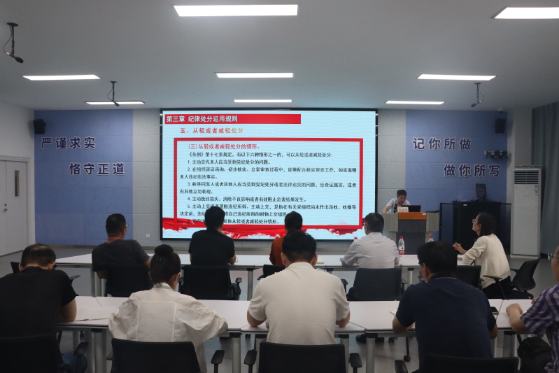 朱曉華圍繞《中國共產黨紀律處分條例》(以下簡稱《條例》)總體要求和適用范圍、違紀與紀律處分、紀律處分運用規則等十個章節內容,結合廉潔教育視頻案例,為大家呈現了一堂生動的黨紀學習教育黨課。
