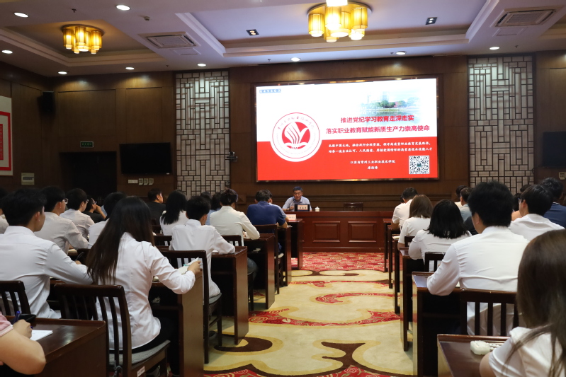 席海濤以《推進黨紀學習教育走深走實,落實職業教育賦能新質生產力崇高使命》為題,圍繞“推進黨紀學習教育走深走實”“習近平總書記在東北考察時首次提出新質生產力”“新質生產力的內涵特征”“新質生產力的內在邏輯關系”“新質生產力的實踐案例”“職業教育賦能新質生產力”六個方面展開講授,并結合學校自身實踐過程引發思考,主題鮮明、重點突出、內容豐富、論述透徹,兼具理論高度和現實指導意義,對于大家深刻理解開展黨紀學習教育的重大意義和新質生產力對職業教育提出的新要求有較強的啟示作用。