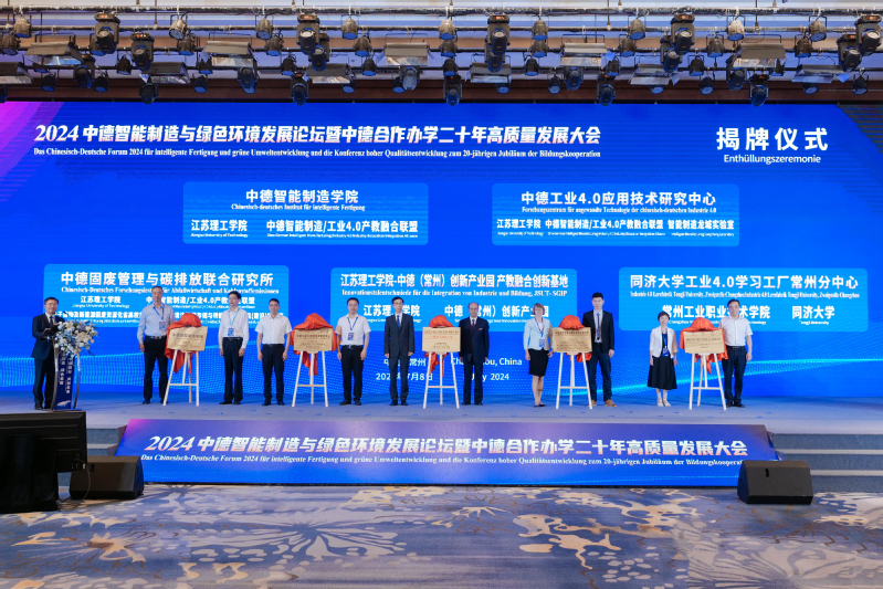 7月8日,2024中德智能制造與綠色環(huán)境發(fā)展論壇暨中德合作辦學(xué)二十年高質(zhì)量發(fā)展大會(huì)在常舉行。我校黨委書記席海濤、校長楊勁松參加會(huì)議并為“同濟(jì)大學(xué)工業(yè)4.0學(xué)習(xí)工廠常州分中心”揭牌。