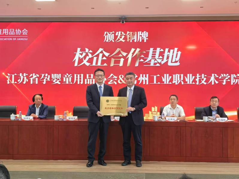 會(huì)上,江蘇省孕嬰童用品協(xié)會(huì)為我校頒發(fā)校企合作基地銅牌。