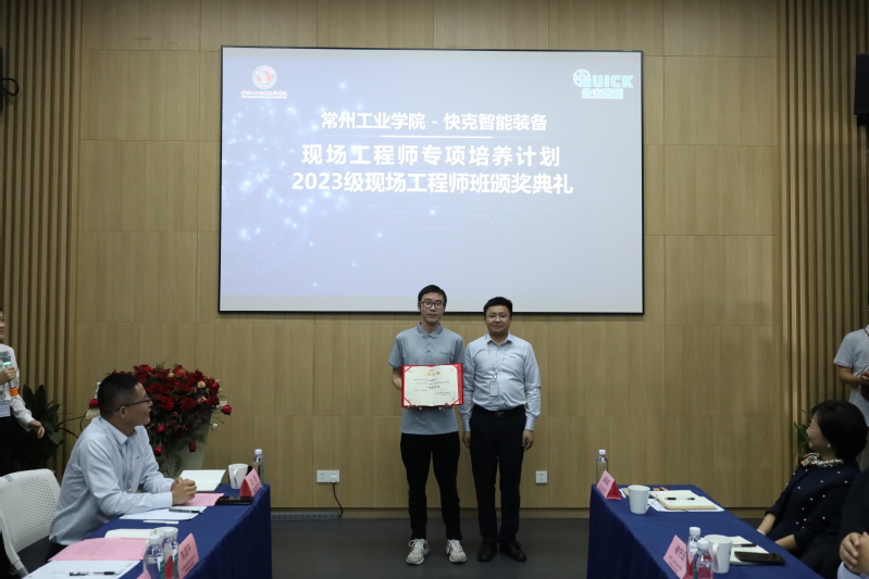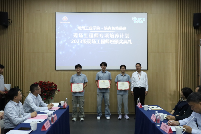 席海濤代表學校對快克智能裝備股份有限公司的精誠支持表示感謝。他強調,“常州工業-快克智能現場工程師項目”是江蘇省首批現場工程師項目,要把準產教融合深化合作方向,把牢平臺建設發展優勢,把握職業教育高質量發展機遇,切實發揮校企合作機制、展現校企育人成效,共同為培育堪當中華民族偉大復興重任的能工巧匠、大國工匠而努力。