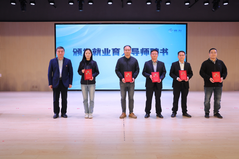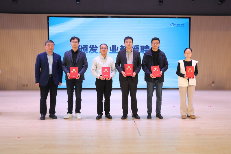 陳江為我校優秀教師代表劉進福、武棟、于涌杰、沈雷、吳晶津、任知洋等頒發“新質生產力人才團隊代表”證書和海內外“引才助理”聘書。