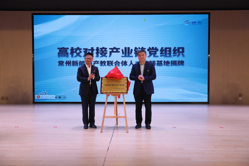 活動中,席海濤和陳江為常州新能源產教聯合體人才實踐基地揭牌,雙方就協同培養高質量人才達成合作。