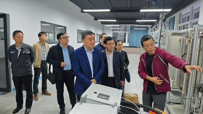 調研組一行首先參觀了江蘇利卡維智能科技有限公司的研發基地。利卡維總經理李明鎖對調研組表示了熱烈歡迎,并詳細介紹了公司在新能源鋰電池材料制造設備領域的技術優勢與科研成果。隨后,調研組來到常州領氫科技有限公司生產測試基地,聽取了清華大學萬曉博士關于最新前沿儲氫技術工藝的介紹。