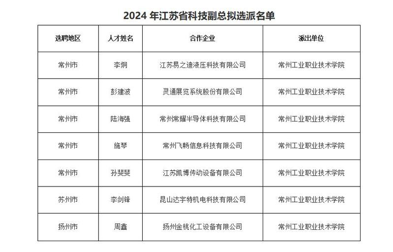 12月9日,從產學研合作處傳來喜訊,在日前由江蘇省科技廳公示的2024年江蘇省科技副總項目擬入選對象名單中,我校李炯等7名教師榜上有名。