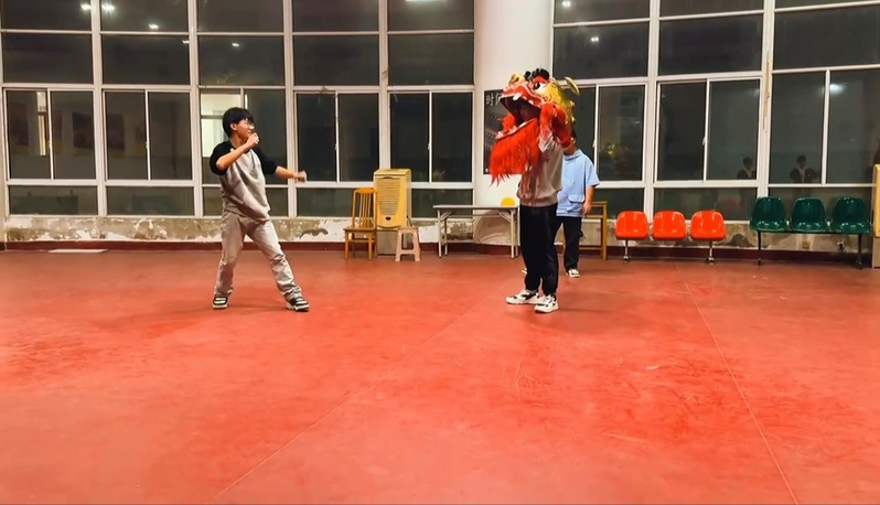 在專業師傅的悉心指導下,同學們親身體驗了馬步、弓箭步、探步、跳步等舞獅基礎步伐,以及禮拜、站立、蹲坐、拍腿、甩球、跳躍、旋轉等核心動作。通過實踐,同學們不僅掌握了舞獅的基本技巧,還深刻感受到了這一傳統技藝的獨特魅力。