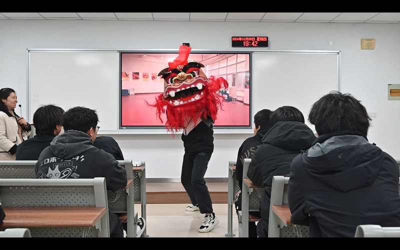 指導老師趙娜娜向同學們詳細介紹了黃沙獅子的歷史背景、文化內涵、傳承現狀以及保護與傳承措施。她不僅闡述了舞獅動作的藝術美感,還深入講解了每個動作背后所蘊含的寓意。接著,黃沙獅子第八代傳承人王添宇帶來了精彩的舞獅表演,贏得了同學們的熱烈掌聲。社團成員也向同學們分享了舞獅的基本動作要領及在表演過程中需要注意的安全事項。