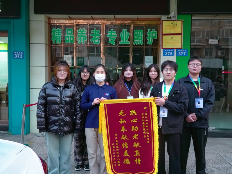 12月11日,藝術(shù)創(chuàng)意學(xué)院團(tuán)委收到了一面來(lái)自常州市慧享福養(yǎng)老院贈(zèng)送的錦旗。“熱心助老獻(xiàn)真情,無(wú)私奉獻(xiàn)傳美德”,短短兩行字道出了養(yǎng)老院所有老人們對(duì)學(xué)院志愿者的衷心感謝,也為這段助老志愿服務(wù)畫(huà)上了暖心注腳。