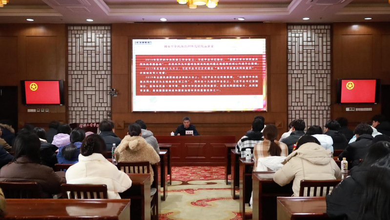 12月19日,黨委書(shū)記席海濤為2024級(jí)空乘、室內(nèi)藝術(shù)專(zhuān)業(yè)的學(xué)生帶來(lái)了一堂主題為“鑄牢中華民族共同體意識(shí)的重大意義與形勢(shì)任務(wù)”的專(zhuān)題思政課。