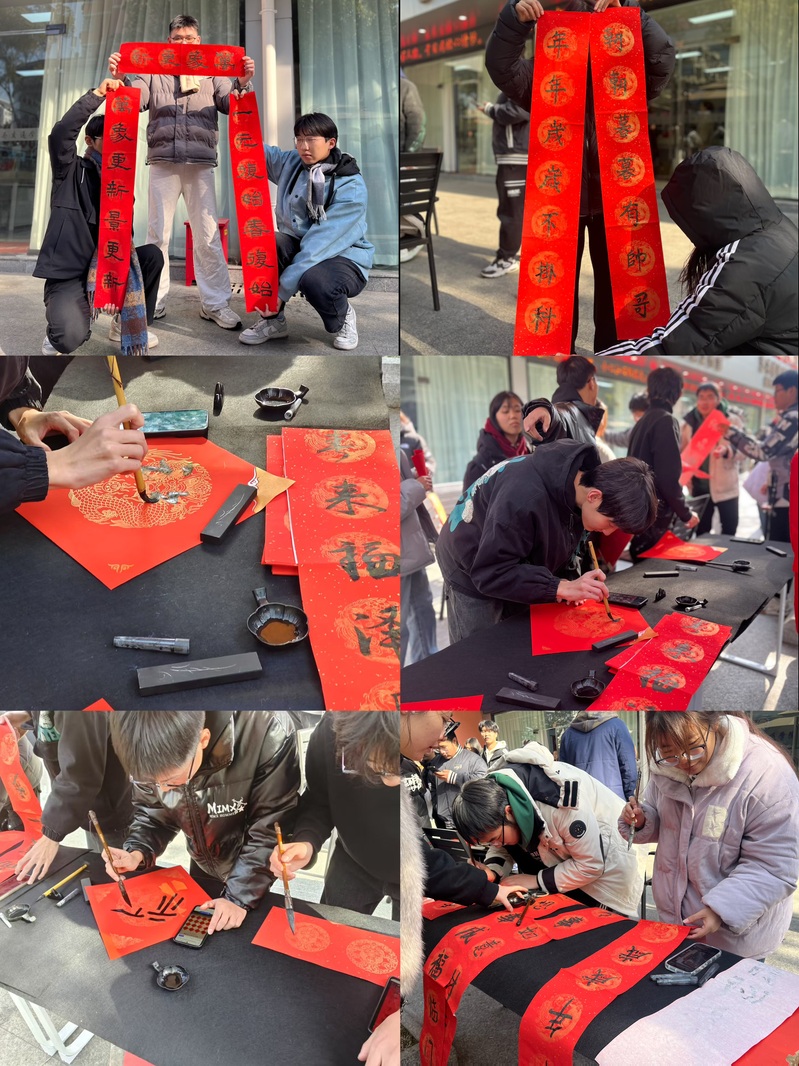 活動現場,學趣礪行坊的社員們揮毫潑墨,書寫了一幅幅寓意吉祥的春聯。春聯內容既有經典的傳統春聯,也有根據學生需求現場創作的個性化春聯,每一副春聯都蘊含著書法社成員們的新年祝福和對傳統文化的熱愛。