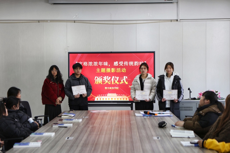 2月24日,數字商務學院舉行“定格濃濃年味,感受傳統韻味”主題攝影活動頒獎儀式,表彰新春攝影作品獲獎學生。