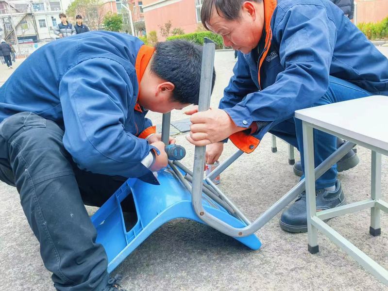 讀書分享會結束后,社區自律會管理委員會、校長助理團聯合蘇東吳常州工業項目部開展了“弘揚雷鋒精神,共筑和諧校園”的志愿服務活動。蘇東吳的“生活指導老師”們開始了拿手的“針線技能”,為同學們細心縫補衣物,修補破損的玩偶,一針一線補齊了殘缺的衣物,也傳遞了艱苦樸素、勤儉節約的生活理念;蘇東吳的“校園工匠”為同學們修理桌椅、家具,幫助同學們解決燃眉之急。