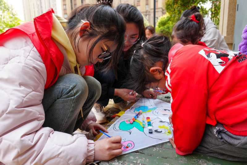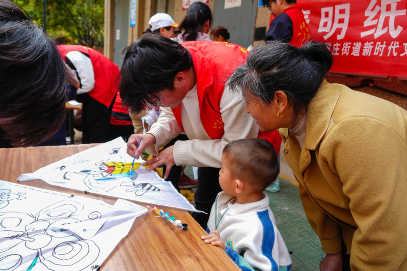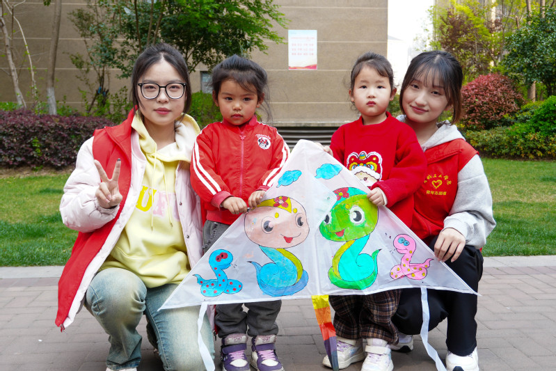 “梨花風起正清明,游子尋春半出城。”在古色古香的詩詞小課堂中,志愿者以動態水墨課件演繹清明時節的經典詩作。通過電腦信息技術,古詩中的踏青場景躍然屏上。詩詞學習之后,志愿者帶領孩子們以礦物顏料繪制傳統文化和二十四節氣圖樣。青匠雷鋒崗的負責人賈明軒結合專業知識給小朋友們講解傳統技藝中的工程智慧。經過兩小時精心制作,承載著童真想象的風箏漸次成型。在這個春風拂面的時節,孩子們在志愿者的陪伴下放飛親手制作的風箏。