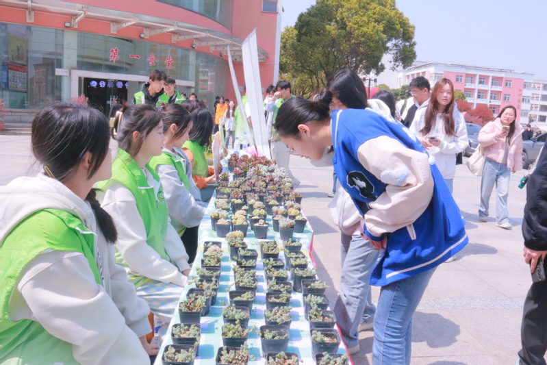 本次活動創新采用“云端播種+線下培育”模式,“線上生態日記”通過抖音及微博平臺開設“綠植成長日記”交流平臺,發布多肉養護、碳中和科普知識,參與者每日上傳綠植狀態,形成動態成長檔案。“線下沉浸體驗”活動現場設置咖啡再生角落、綠植領養站、多肉微造型展覽,為同學們解決種植與養護難題。活動特別設立“團支部領養責任田”,全院團支部認養“一站式社區綠地”,定期開展養護評比;開展綠色主題團課,納入第二課堂學分體系,并持續開展綠植養護打卡、環保創意大賽等系列項目。