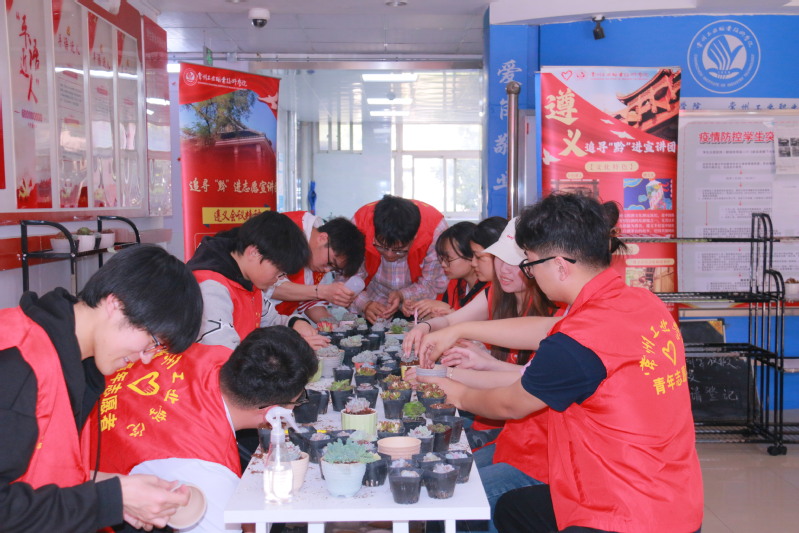4月10日,機械與交通學院追尋“黔”進志愿宣講團聯合綠之源協會在“一站式”學生社區舉辦“紅綠相映·薪火相傳”主題實踐活動。活動通過手工制作多肉植物微景觀與紅色精神宣講相結合的形式,吸引了百余名學生參與,在勞動實踐中傳遞生態環保理念,在歷史回望中賡續遵義會議精神。