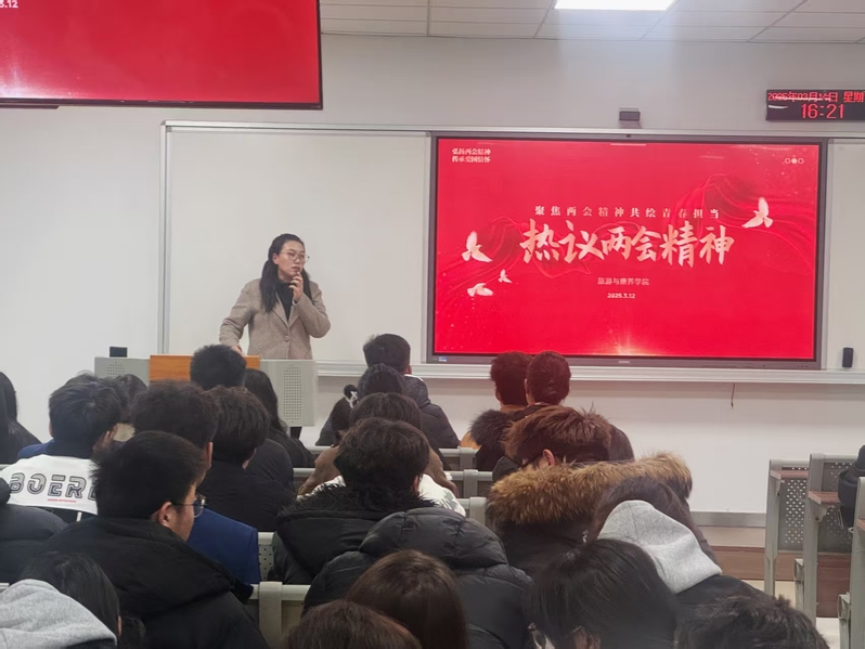 連日來,旅游與康養學院以“一站式”學生社區為載體,以思想領航、精神鑄魂為目的,開展了多層次、多維度的兩會精神宣講活動。