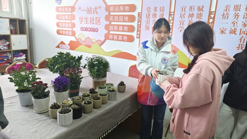 與此同時,“綠植領養計劃”同步啟動。學院準備了30余盆綠蘿、吊蘭、虎皮蘭等易養護的綠植,參與同學可免費認領一盆植物,并獲贈養護手冊?;顒右箢I養者定期記錄植物生長狀態,并通過線上、線下方式分享養護心得,學期末還將評選“最佳護綠達人”。