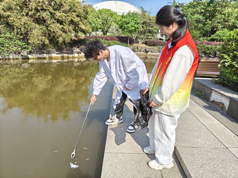 同時(shí),志愿者們?cè)谛@內(nèi)清理水域附近垃圾,保護(hù)校內(nèi)環(huán)境。活動(dòng)中,他們兩兩配合,手持垃圾袋和撿拾工具,沿著池塘仔細(xì)搜索池塘邊的垃圾,給學(xué)校帶來(lái)一片潔凈。志愿者們表示,希望通過(guò)點(diǎn)滴行動(dòng)帶動(dòng)更多人參與環(huán)保,共同維護(hù)學(xué)校的優(yōu)美景色。