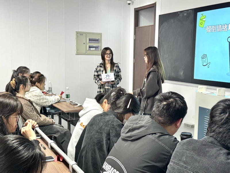 活動以沉浸式心理疏導為核心,創新設計情緒釋放與互助療愈環節。在舒緩的背景音樂與專業引導下,同學們通過書寫將近期面臨的學業壓力、人際困擾等負面情緒具象化呈現,并有序投入指定的“情緒垃圾桶”。隨后,大家隨機抽取紙條,以真誠之心回應他人困擾,有人分享相似經歷并給予共情鼓勵,有人從實際出發提出解決思路。在思維碰撞與暖心話語中,現場洋溢著互助互信的熱烈氛圍。最終,承載負面情緒的紙張被折成紙飛機,隨煩惱一同飛向天際。當無數紙飛機騰空而起,同學們的臉上也綻放出釋然的笑容,完成與壞情緒的和解。